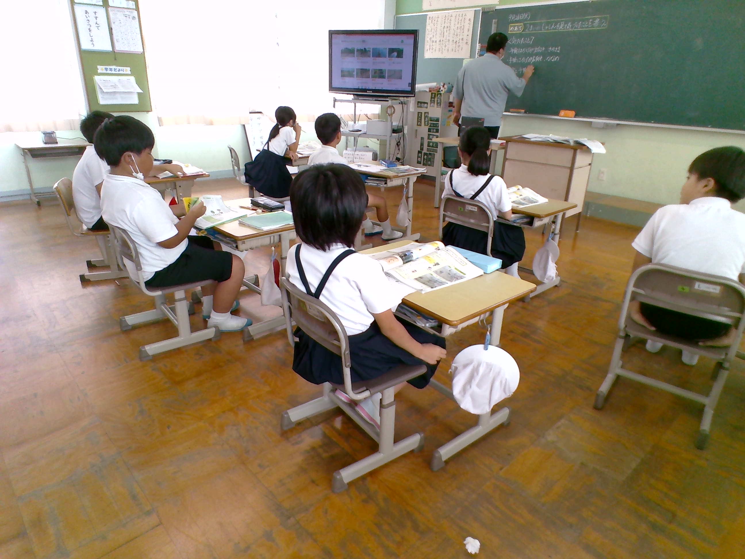 1年生の国語では,カタカナの練習をはじめにみんなでしてワークノートに各自でかいて先生に見てもらっています。2年生の国語では,主人公の気持ちの変化を読み取って自分たちのペープサート劇に生かせるようにしています。3年生のいきいきでは,クロムブックパソコンでのプログラミングの基礎を学んでいます。